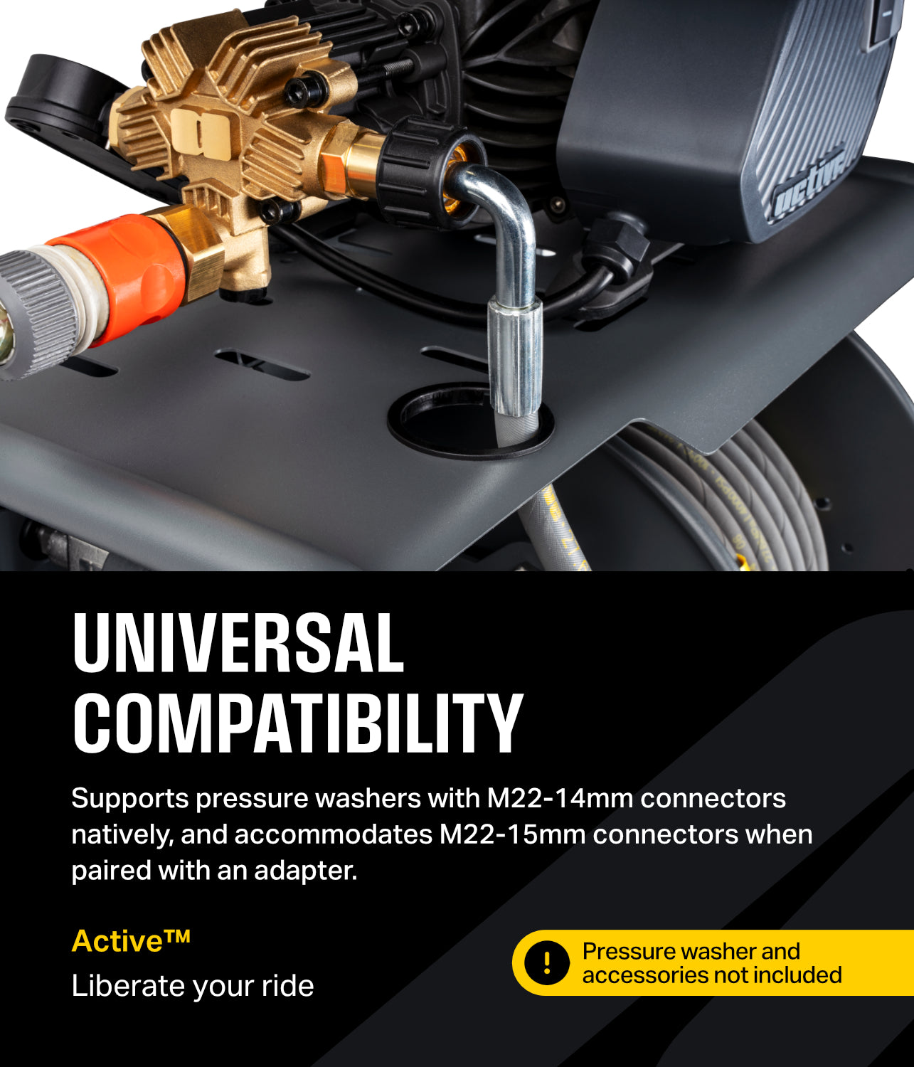 Despite universal adaptability, the system is optimized for used with Active 2.0 and 2.3 pressure washing solution and the Active accessory solution.