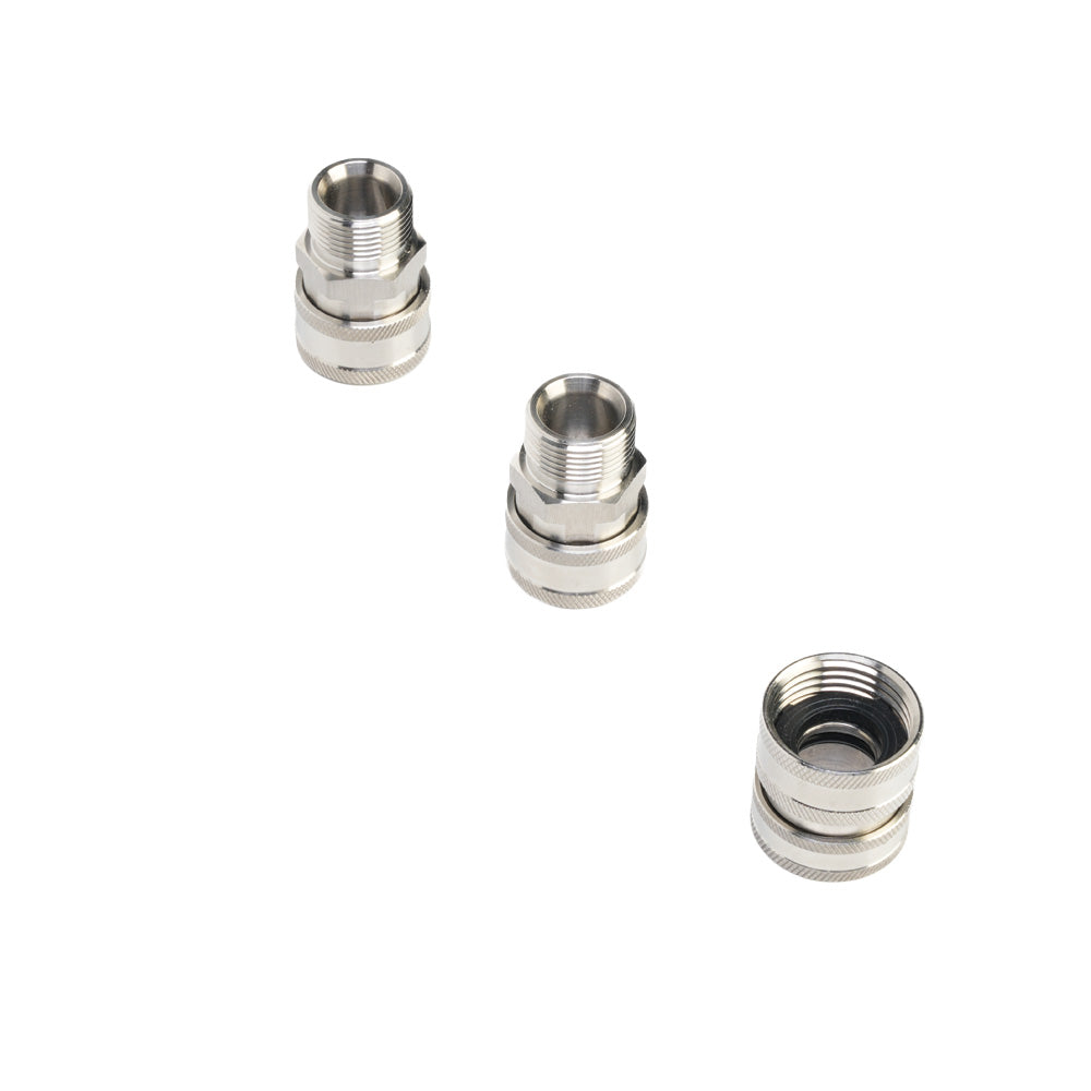 The construction of the Active Quick Connect Kit is fully machined 304 stainless steel. This allows for smooth connections based on precision of the machining process and higher degree of resistance to corrosion.